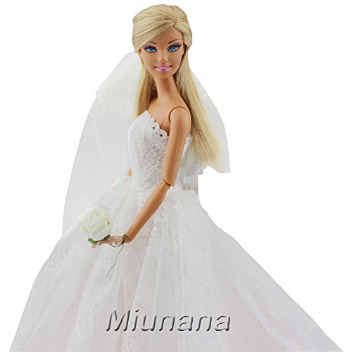 Miunana 1 Vestido De Novia Con 1 Velo Vestir Ropa Boda Accesorios Como Regalo Para Muñeca Barbie Doll Blanco