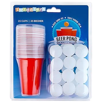 Set De Beer Pong Americano 25 Vasos Rojos Y 25 Bolas De Pimpón Juego De Mesa Para De Adultos Accesorio Para Fiesta De Disfraces Cumpleaños